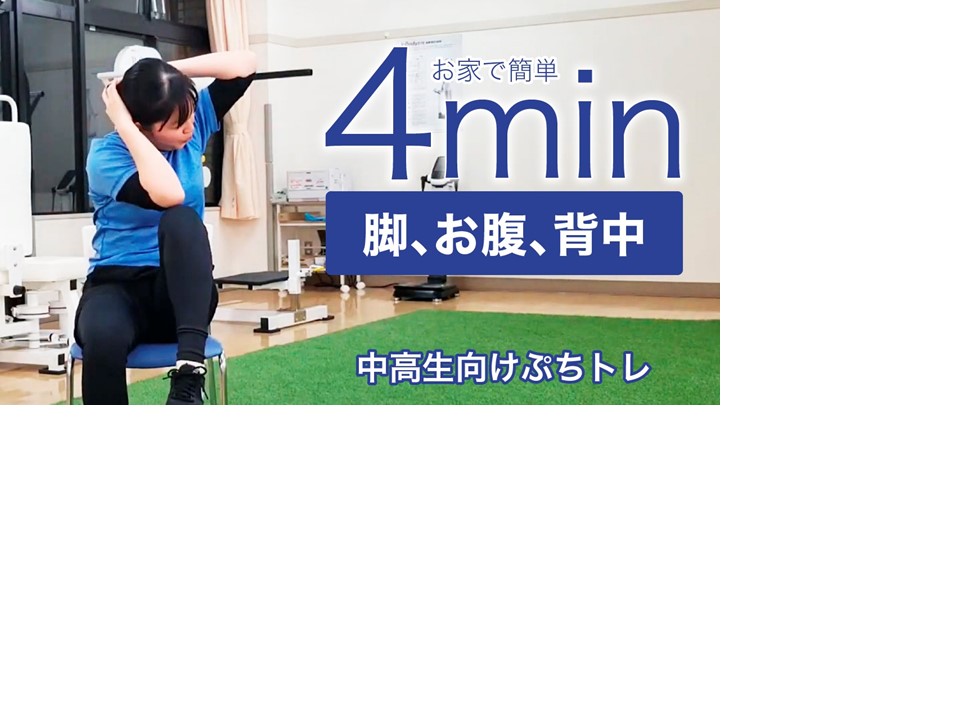 お家で簡単!4分ですっきり!プチトレーニング動画を配信しています!!”すぽっと”スタッフのゆきトレーナーと一緒に、楽しく「ぷちトレ」してみませんか?1.4分で脚、お腹、背中トレーニングhttps://www.youtube.com/watch?v=r9y2Bmd9Hes 2.4分で脇腹、お腹、背中トレーニングhttps://www.youtube.com/watch?v=ezKR5nc_in0 3.4分でうで、肩まわりトレーニングhttps://www.youtube.com/watch?v=W_Zsp4eqovM