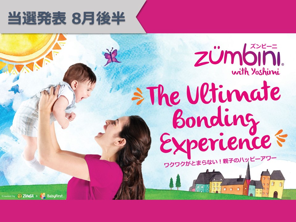 【当選発表ページ】Zumbini抽選申し込みについて抽選受付期間: 2022年7月30日(土) 10:00~8月2日(火) 10:00当選発表:2022年8月5日(金)17:00~下記PDFファイルよりご当選者の受付番号をご確認ください。▼8月18日(木) PDFファイル