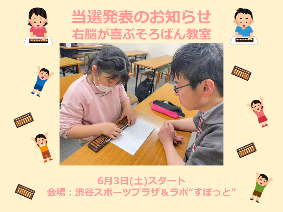6月3日(土)スタート<全12回>の右脳が喜ぶそろばん教室には、大変たくさんの方よりお申し込みいただきありがとうございます。
