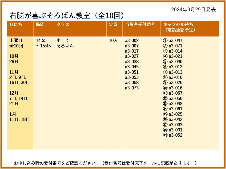 10月26日(土)スタート<全10回>の右脳が喜ぶそろばん教室には、大変たくさんの方よりお申込みいただきありがとうございます。