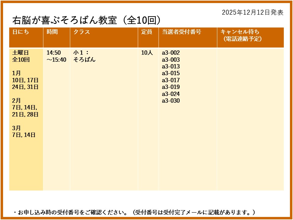 2026年1月10日(土)スタート<全10回>の右脳が喜ぶそろばん教室には、大変たくさんの方よりお申込みいただきありがとうございます。