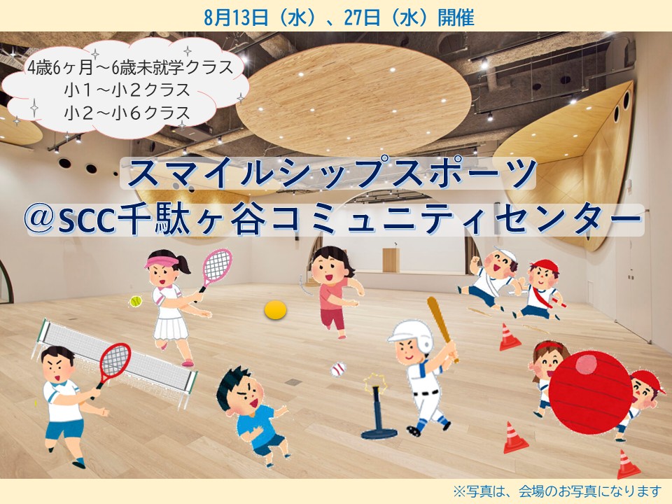 夏休み!ということで、いつもよりも広い会場で、思い切りスマイルシップスポーツを楽しみませんか!?