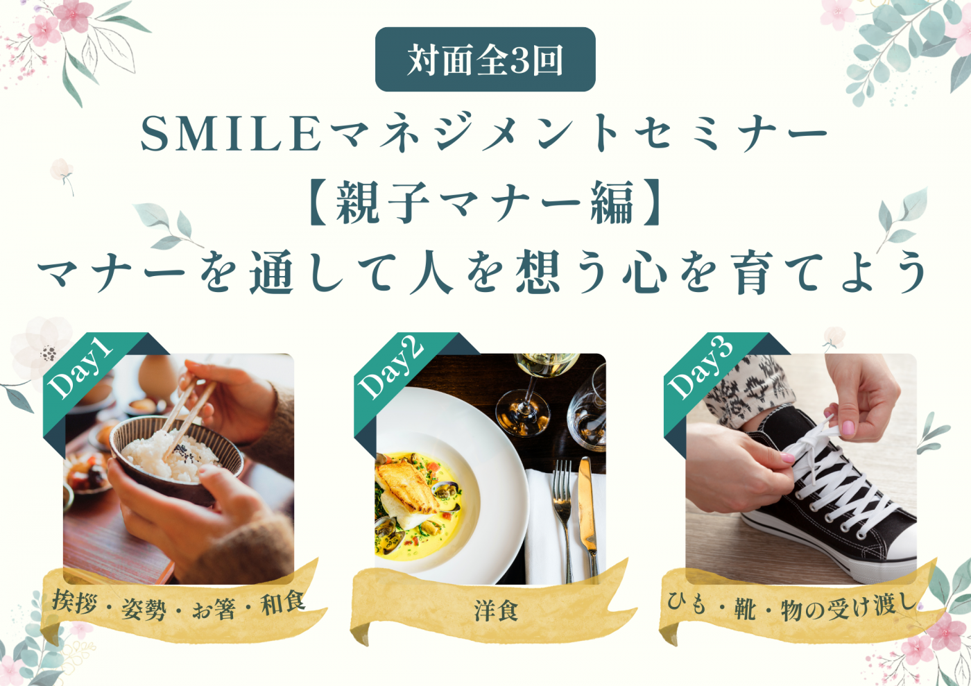 この度はSMILEマネジメントセミナー【親子マナー編】に関心をお寄せいただきありがとうございます♪